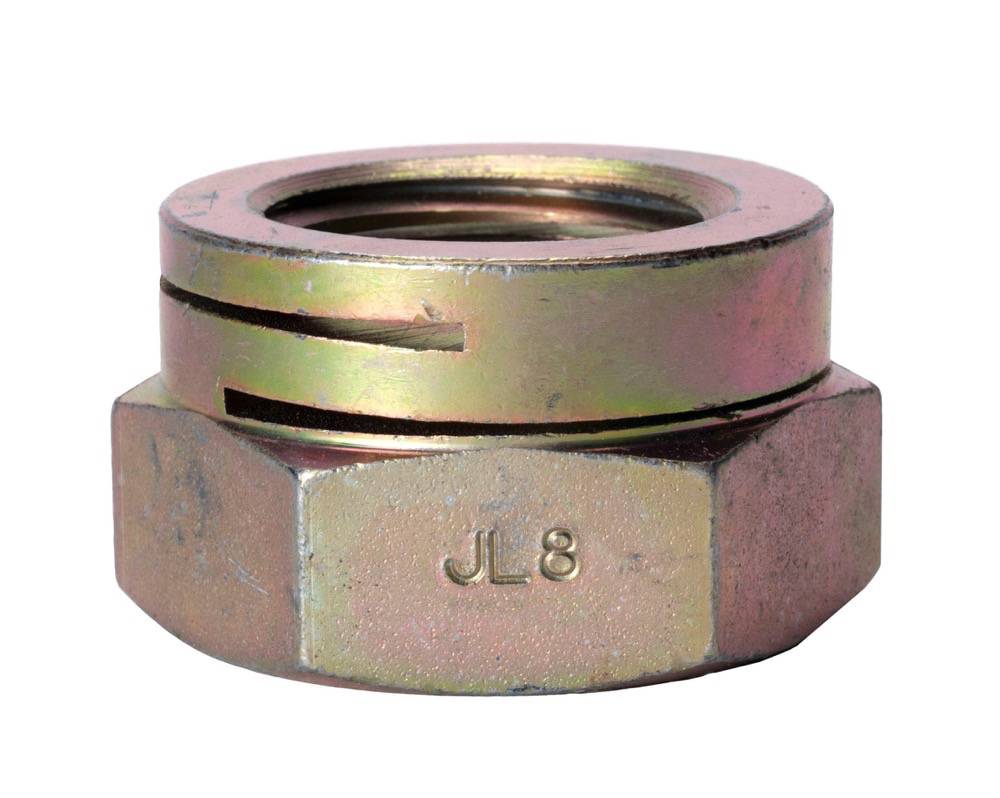 J.Lanfranco dual-slotted locknuts are based on depitched rather than distorted or deformed threads. As a result, they provide highly-consistent, repeatable, and reliable self-locking torque that’s independent of bolt tension.